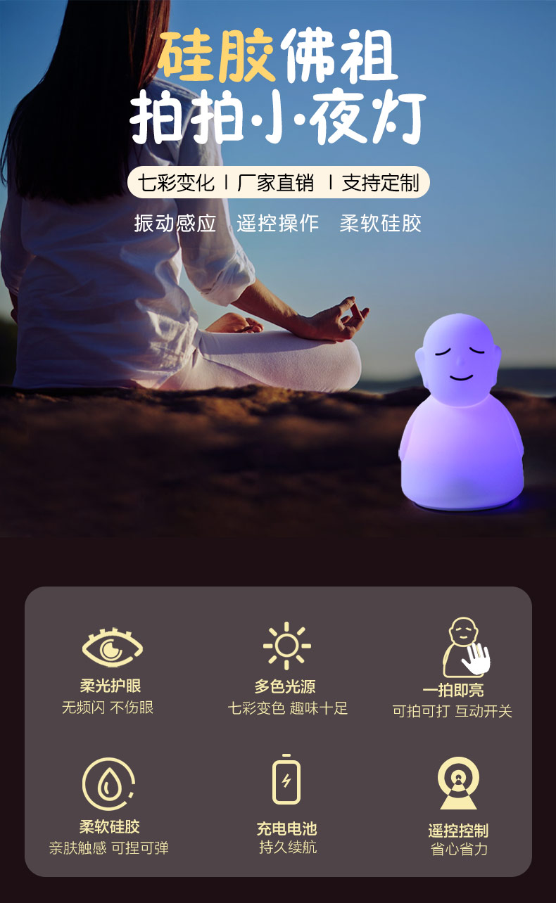 您的位置:首頁 > 產(chǎn)品中心 > 硅膠家居用品 > 拍拍燈 > 佛主拍拍燈夜間照明伴睡可充電遙控器遠(yuǎn)程小夜燈