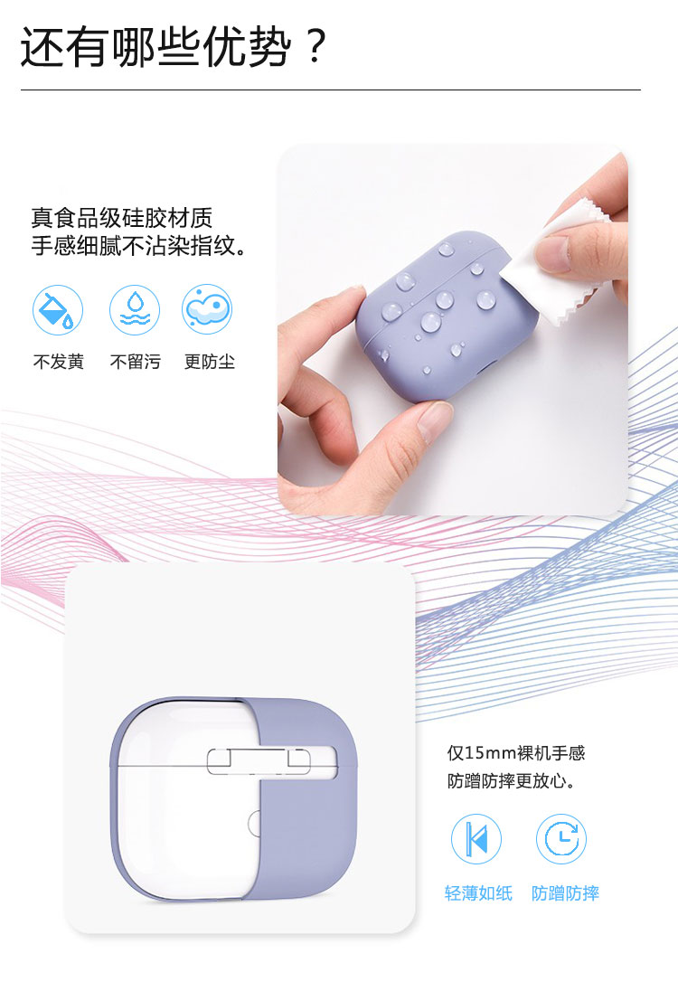 產(chǎn)品特點(diǎn):環(huán)保材質(zhì)  親膚硅膠  輕薄舒適  全包防摔  防污去漬  經(jīng)久耐用