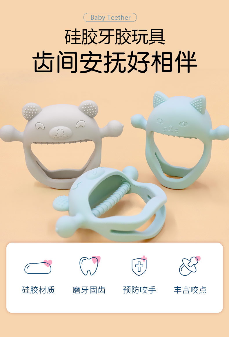 寶寶磨牙棒 嬰兒手套硅膠牙膠 護(hù)手嬰幼兒小熊嬰兒牙膠