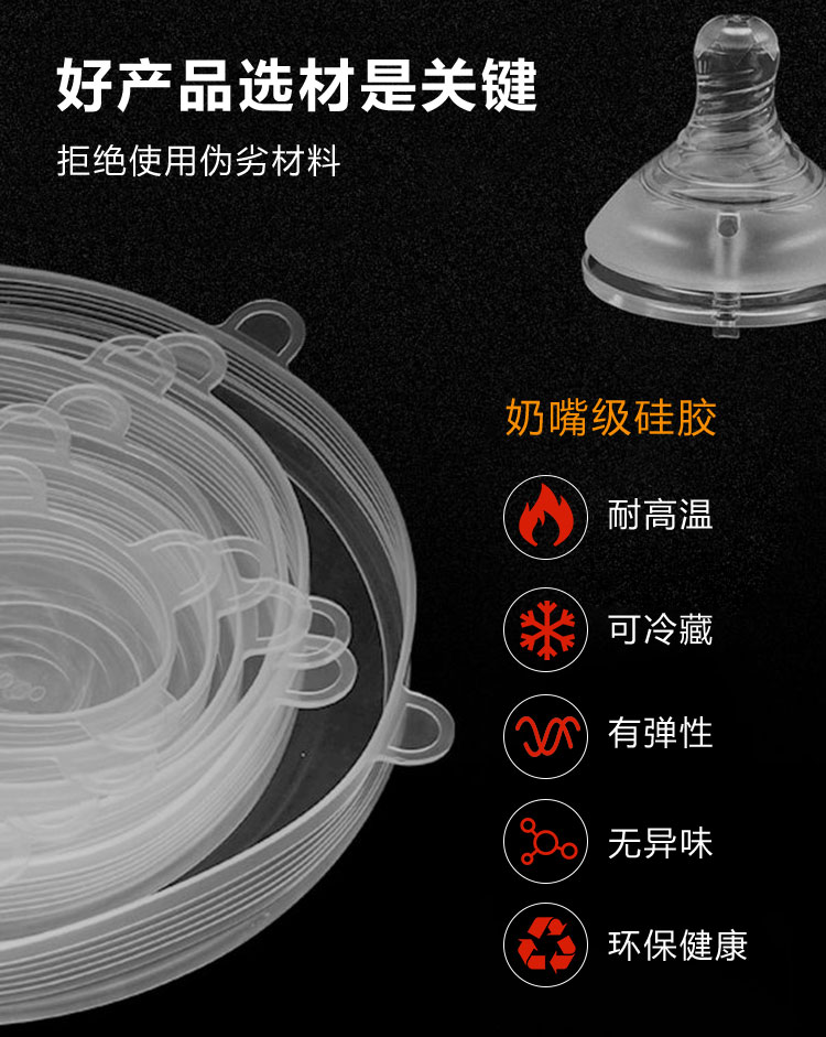 產(chǎn)品名稱:可拉伸多功能硅膠保鮮蓋六件套