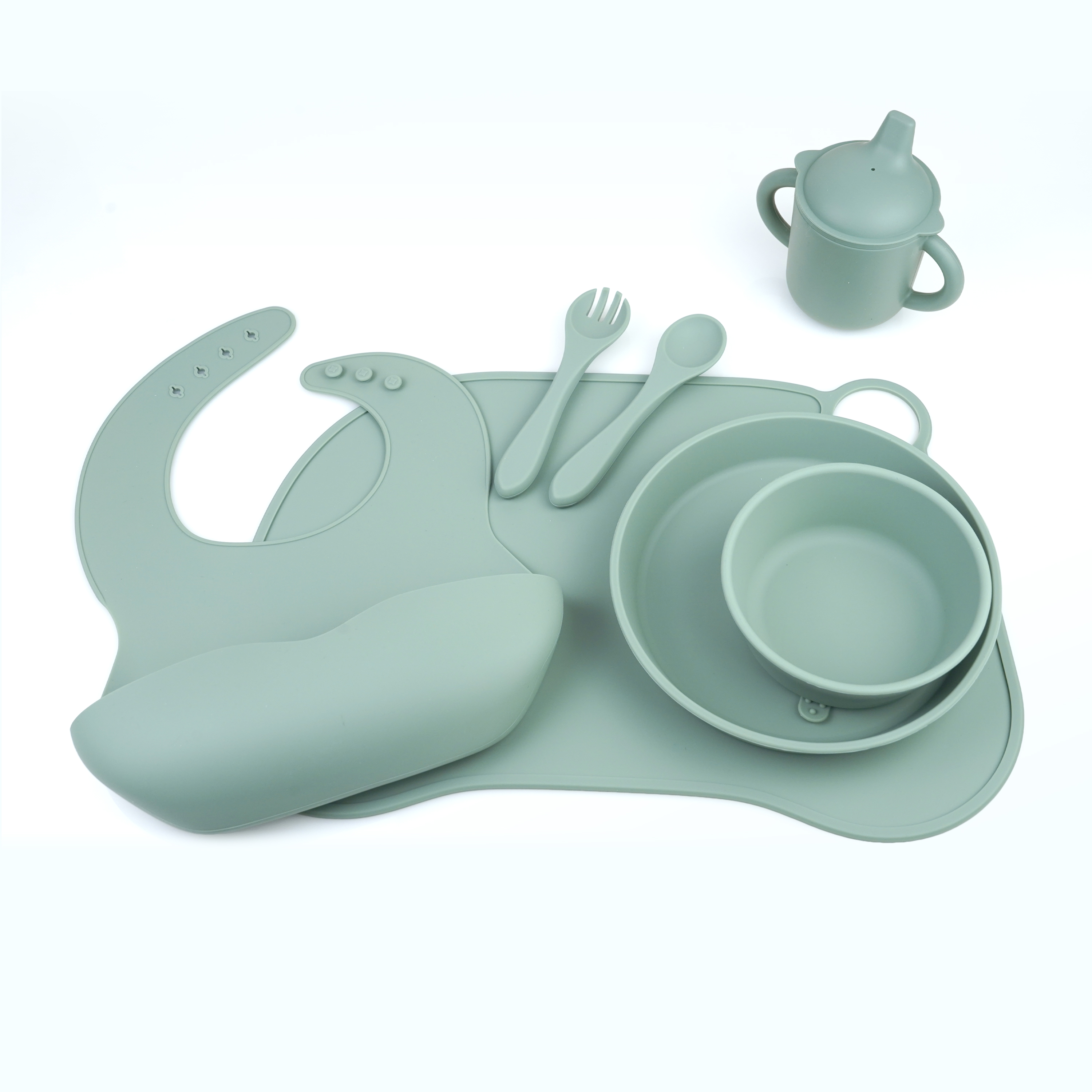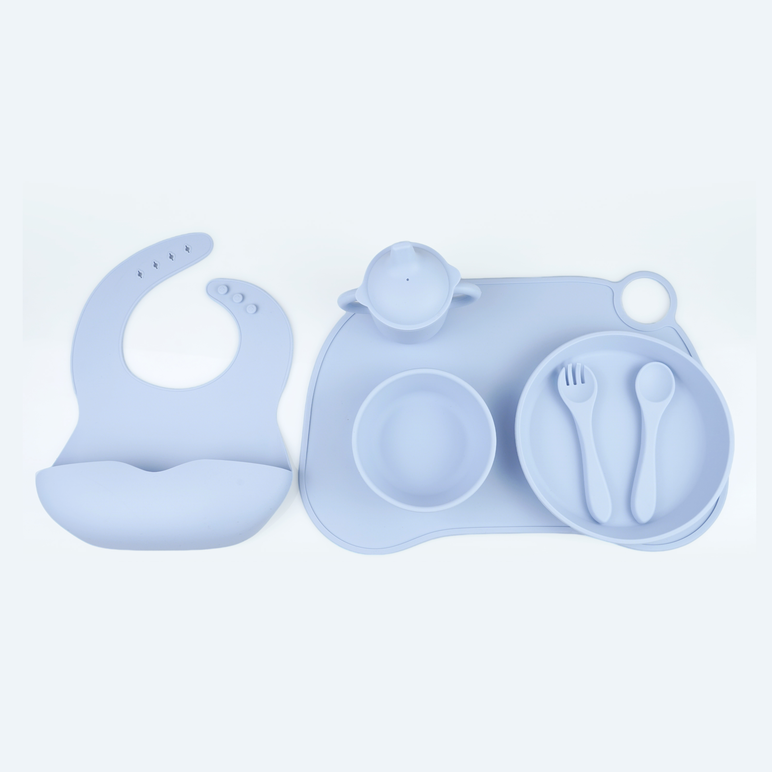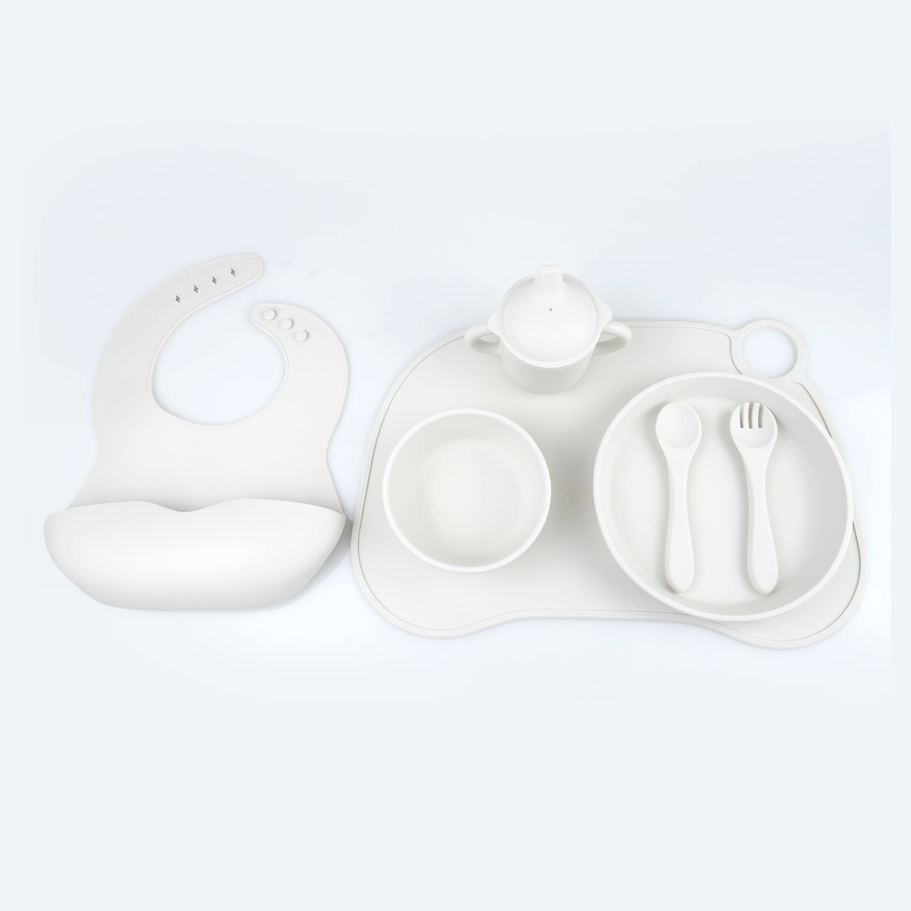 口水兜+碗+叉勺+餐盤+學(xué)飲杯+餐墊