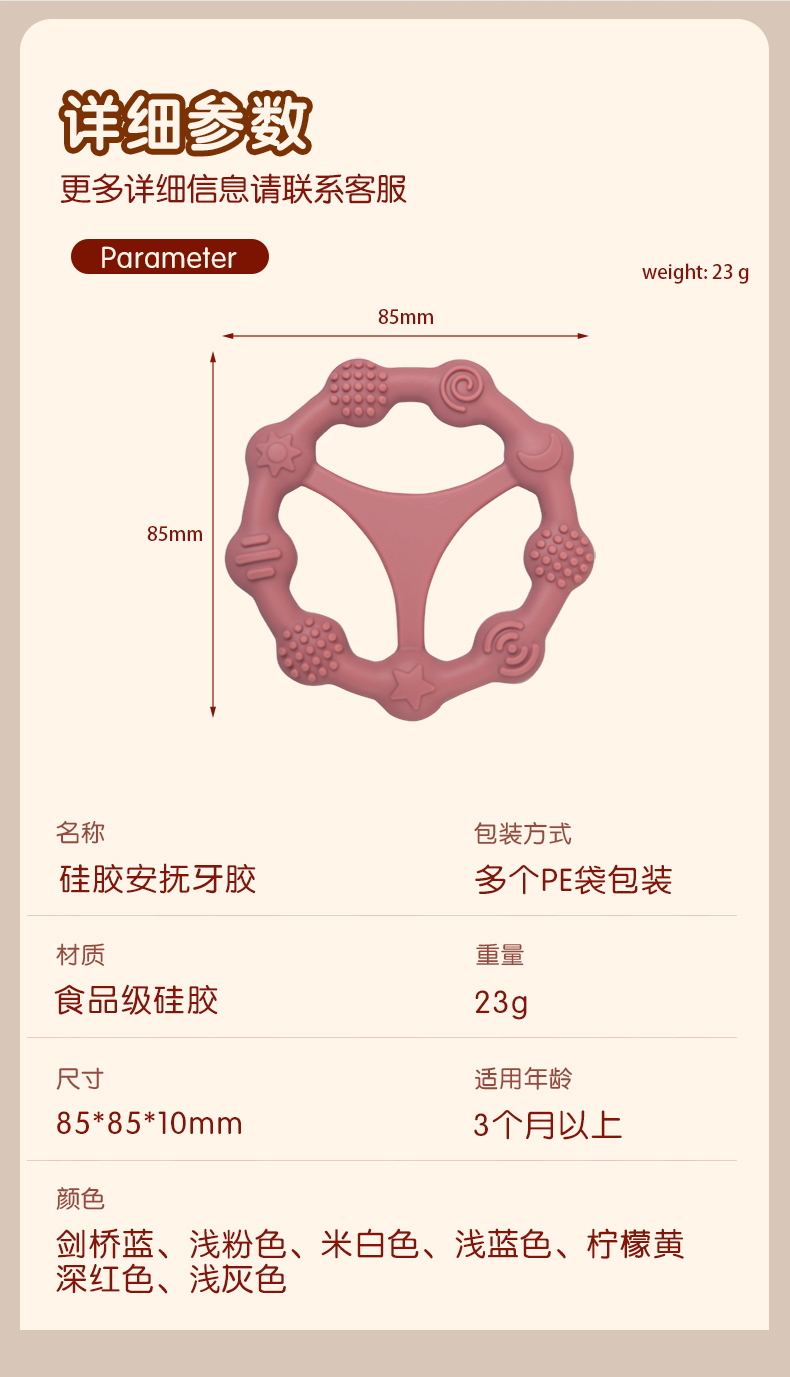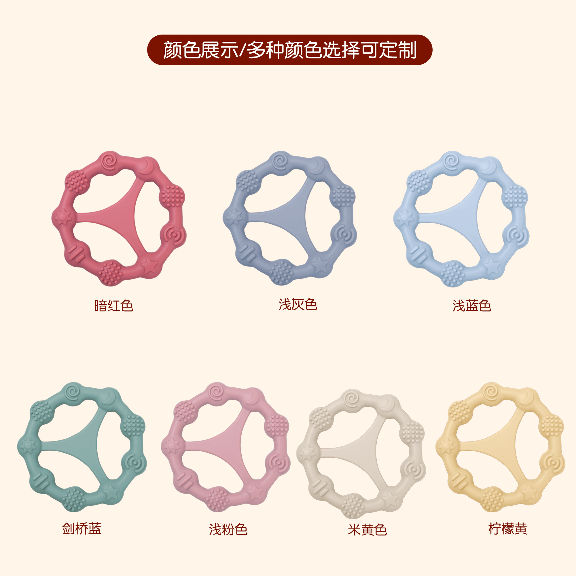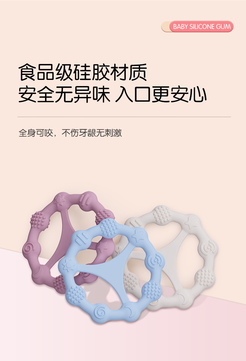 您的位置:首頁(yè) > 產(chǎn)品中心 > 硅膠嬰童用品 > 牙膠 > 嬰兒硅膠牙膠防吃手食品級(jí)嬰兒玩具配件母嬰牙膠