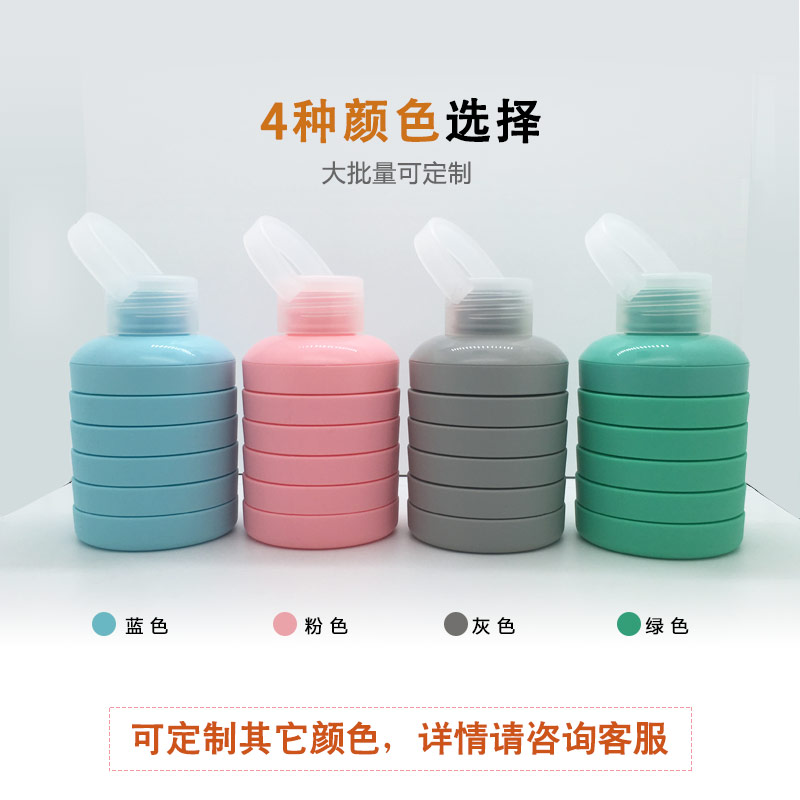 便攜式硅膠折疊水瓶采用食品級硅膠材質(zhì),符合食品級標準,符合相關質(zhì)檢標準,這款運動折疊水瓶是本公司2021年最新研發(fā)生產(chǎn)的硅膠制品,顏色目前只生產(chǎn)了4種,分別為灰色,綠色,藍色,粉紅色,瓶蓋為白透明色,也可以根據(jù)要求來定制各種材質(zhì)或者是不同形狀的瓶蓋顏色或者是樣式??裳b熱水,方便旅行攜帶,具有耐摔,耐高溫,柔軟等特點。